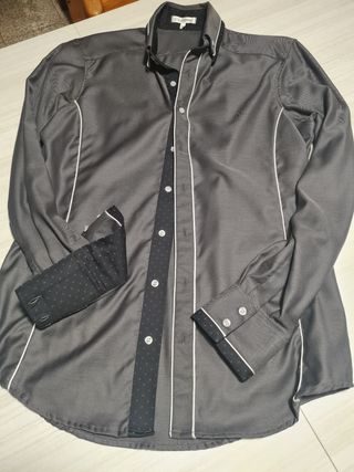 Camicia Nara Camicie uomo, tg M, grigia scura con dettagli pois.