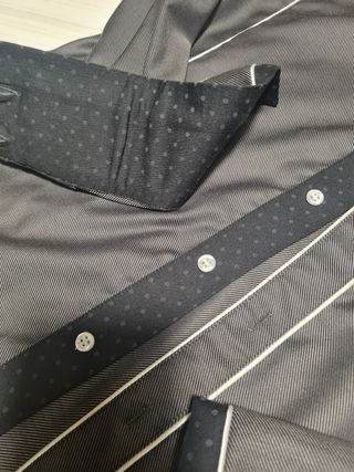Camicia dal taglio classico e dal tessuto satinato. Un bottone si è staccato ha una macchia - Maniche lunghe con polsini. - Chiusura con bottoni. - Collo a camicia.