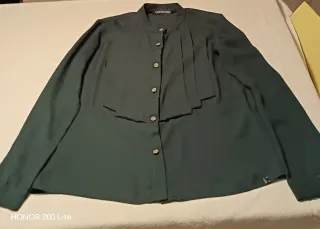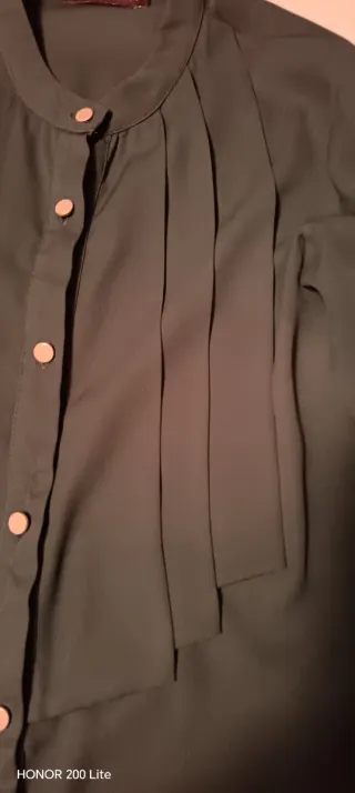 Camicia femminile color rosa cipria/nude, marca Basic. Il modello presenta uno scollo a V profondo con un'elegante arricciatura (ruches) centrale sul busto che valorizza la figura. * Taglia: L (veste fedele alla taglia, materiale leggermente elasticizzato). * Colore: Rosa pastello / Nude. * Dettagli: Chiusura con bottoncini tono su tono, maniche lunghe, taglio sfiancato sul retro per un fitting perfetto. * Condizioni: Ottime condizioni, usata pochissimo. Tessuto leggero e fresco, ideale per l'ufficio o un look casual-chic. * Materiale: Misto cotone (morbido al tatto). Disponibile per spedizione immediata o consegna a mano