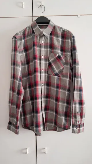 Camicia Jack&Jones collezione Vintage, taglia S, collo alla coreana, non ha più etichetta interna di composizione del tessuto ma é sicuramente cotone. Indossata poco, nessun difetto.