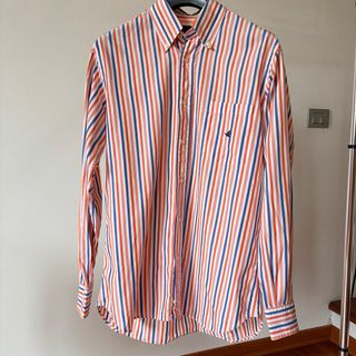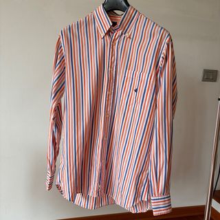 Splendida camicia da uomo firmata Brooksfield, originale e in ottime condizioni. Il capo presenta un vivace motivo a righe verticali nei toni dell'arancione, blu e bianco, perfetto per un look casual-chic o per aggiungere un tocco di colore sotto una giacca. Caratteristiche principali: * Marca: Brooksfield * Taglia: 39 (corrisponde a una M) * Colletto: Modello Button-down (con bottoni sulle punte) * Dettagli: Taschino frontale sul lato cuore con logo ricamato (il classico uccellino Brooksfield in blu). * Vestibilità: Regolare / Classica. * Condizioni: Ottime, ben conservata, senza macchie o segni di usura evidenti. Colori anco