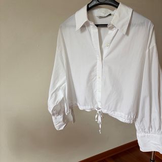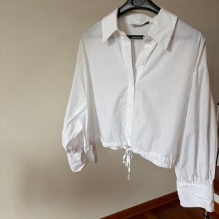 Bellissima camicia/blusa bianca di Zara, dal taglio moderno, fresco e versatile. ✨ Dettagli del capo: * Modello: Taglio leggermente cropped / boxy. * Fondo: Regolabile con comodo laccetto (coulisse) per arricciarla in vita a piacimento. * Maniche: Lunghe, ampie e leggermente a palloncino, con dettagli arricciati sui polsini abbottonati. * Chiusura: Frontale con bottoni e colletto classico. 📏 Taglia: M (EUR M / USA M / MEX 28) 🏷️ Brand: Zara 🧵 Condizioni: Ottime condizioni, nessun difetto visibile. Perfetta sia per un look casual abbinata a dei jeans a vita alta, sia per outfit più curati! #zara #zarawoman #camiciazara #camiciabi