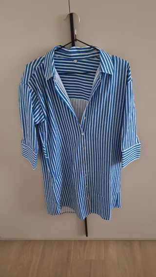 Camicia lunga a righe, perfetta per un look casual ma curato. - Design a righe verticali. - Maniche lunghe con polsino. - Chiusura con bottoni.