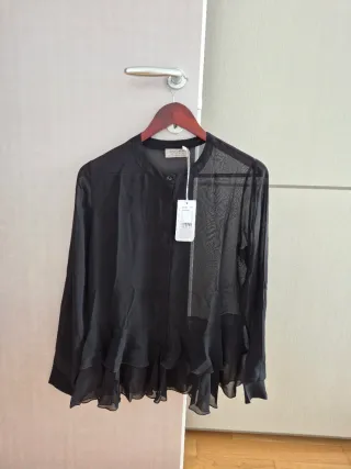 Camicia donna Falconeri in seta 100%, colore nero, taglia S, effetto trasparente. NUOVA perfetta con cartellino.