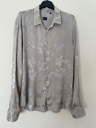 Camicia a maniche lunghe con un elegante motivo floreale. - Tessuto con lavorazione jacquard. - Colore di base beige con dettagli argento. - Chiusura con bottoni. - Colletto classico.