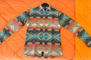 Stupenda Camicia review invernale vintage, in condizioni pressocchè perfette. Stile nativo americano, non molto comune. Bellissimi colori caldi e fantasia degli intrecci che si fa notare. Come nuovo, preso con molto gusto da un mercatino vintage di fretta in vacanza ma non mi va, è una taglia L ma veste come una M abbondante