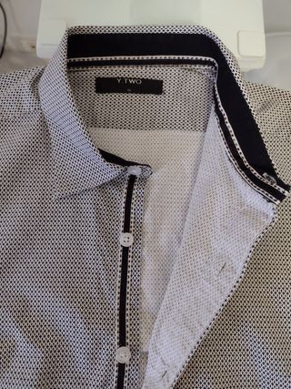 Camicie uomo manica lunga, taglia M slim (girovita 90 cm ; spalla 45 cm) 4 Euro al pezzo a scelta -Camicia fondo Bianco con disegni e interno polsini neri, 97% cotone / 3% elastina -Camicia a quadri con bottoni a pressione, 100% cotone -Camicia effetto raso lucido, colore Blu, 65% cotone / 32% viscosa / 3% elast. Per altre info contattatemi - Vestibilità slim fit.