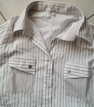 Camicia da donna in tessuto leggero, perfetta per un look casual. 100x100 lino Lunghezza cm 80 da ascella ad ascella cm 72 larghezza spalle cm 74 - Maniche lunghe. - Chiusura con bottoni. - Taschino sul petto.