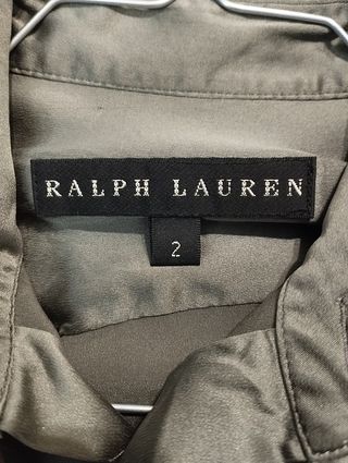 Elegante camicia da donna Ralph Lauren. - Colore verde oliva. - Tessuto satinato. Bella e elegante Camicia in seta di colore oliva con colletto clássico. 96 % Seta 4 % Elastane Taglia 2 (38 IT) Indossata pochissimo, in perfette condizioni.