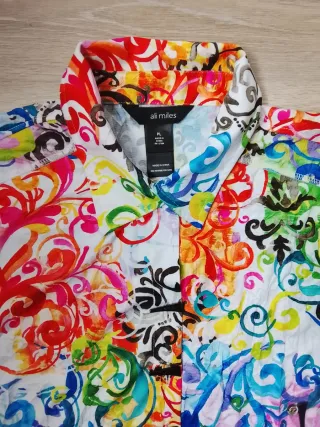 Bellissima camicia estiva OVS, senza maniche, con fantastica stampa tropicale multicolor. - Modello a bottoni e da annodare - Tessuto leggero e fresco. semitrasparente - Perfetta per l'estate. usata due volte