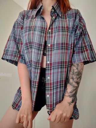 Camicia in cotone con un classico motivo a quadri. - Maniche corte. - Colletto. - Chiusura con bottoni.