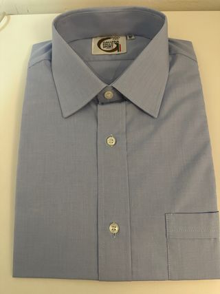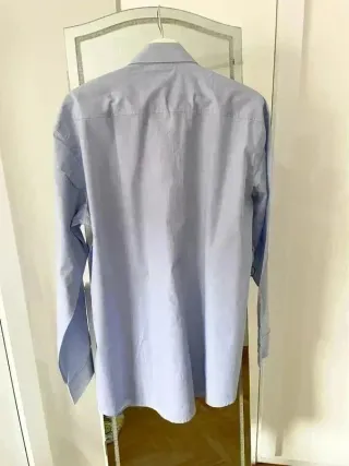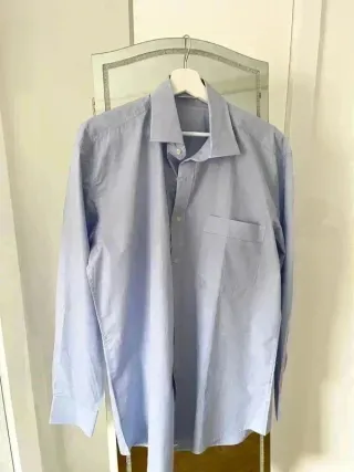 Camicia da uomo a maniche lunghe. - Materiale: cotone - Colore azzurro. - Taglia L (vestibilità 52-54). - Collo classico. - Da ascella ad ascella: 57 cm