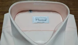 Camicia da uomo Frarica in un delicato color rosa. Perfetta per un look elegante. - Tessuto di alta qualità. - Colletto classico. - Maniche lunghe con polsini abbottonati. Misura collo 42 cm - Made in Italy.