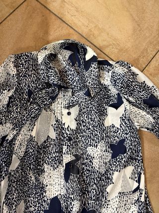 Camicia elegante con un design semitrasparente. - Tessuto leggero e arioso. - Dettagli puntinati sul tessuto. - Chiusura con bottoni frontali. Veste una S/M Non ha etichette