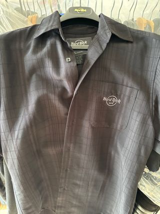 Camicia a maniche corte con un motivo a quadri discreto. - Logo Hard Rock Cafe ricamato sul taschino. - Colletto classico. - Chiusura con bottoni.