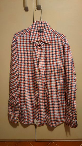 Camicia a maniche lunghe, senza taschino e chiusura a bottoni. Marca Massimo Rebecchi. Taglia non indicata, indicativamente una L/XL. Fantasia a righe/quadretti rossi e blu È stata indossata pochissime volte, conservata in ottime condizioni, non presenta imperfezioni di alcun tipo. 🧍 Possibilità di consegna a mano! 🌸Disponibile per ulteriori foto e informazioni!