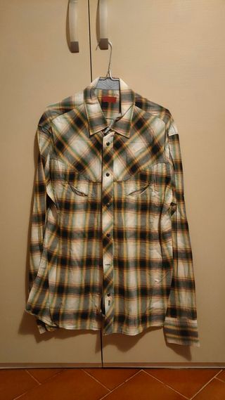 Camicia a maniche lunghe, con doppio taschino e chiusura a bottoni, sia con asola che a pressione. Marca Levi Strauss & co. Taglia XL. Fantasia simil scozzese sui toni del verde e del giallo. Materiale 100% cotone. È stata indossata pochissime volte, conservata in ottime condizioni, non presenta imperfezioni di alcun tipo. 🧍 Possibilità di consegna a mano! 🌸Disponibile per ulteriori foto e informazioni!