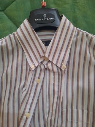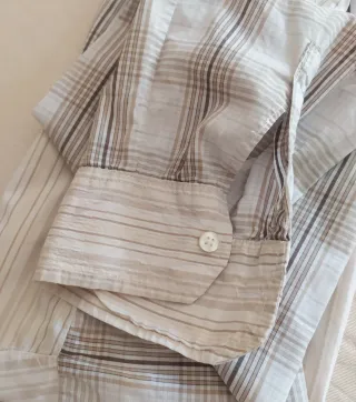 Camicia da uomo a righe bianca, beige, marrone e azzurra ovs Con taschino in alto a sinistra Colletto con bottoncini Taglia S