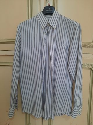 Camicia a righe bianca e celeste Taglia M 100% cotone