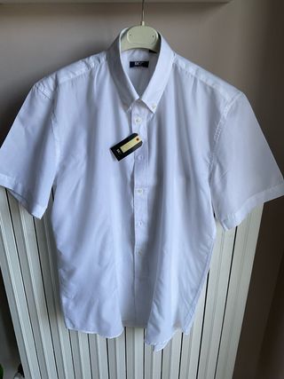 Camicia da lavoro a maniche corte, colore bianco. Nuova con cartellino. Il taschino è stato tolto. - Tessuto leggero e traspirante. - Colletto con bottoni. - Vestibilità comoda.