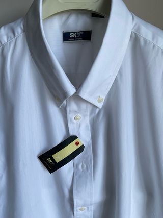 Camicia bianca semplice a tinta unita con doppio colletto blu scuro con bottoncini Taglia S 65% cotone