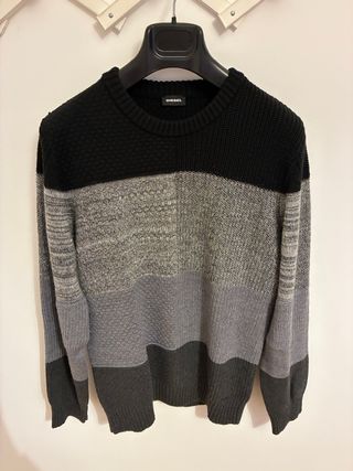Maglione da uomo Diesel con un design a blocchi di colore. - Girocollo - Maniche lunghe - Tessuto a maglia con diverse texture - nuovo mai indossato