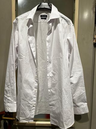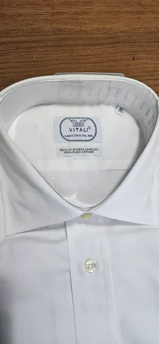 Camicia bianca a maniche lunghe, taglia M da uomo. Vestibilita slim fit Marca: jack and jones 60% cotone e 40% poliestere Con due bottoni di ricambio
