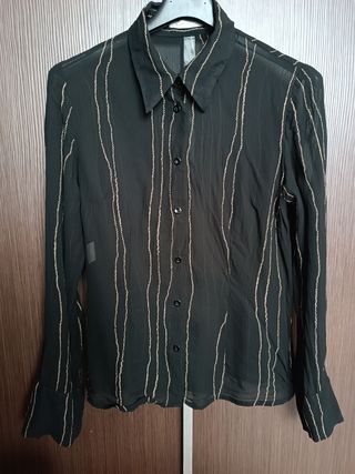Camicia donna 100% viscosa, marca Niama Woman, taglia M (veste una 44 italiana) colore nero tessuto velato. Indossata una sola volta in occasione di una cerimonia.