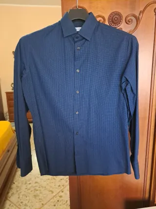 Bellissima camicia da uomo, in ottime condizioni. - Colore blu intenso - Tessuto di qualità - Motivo a pois discreto - Perfetta per occasioni formali e informali