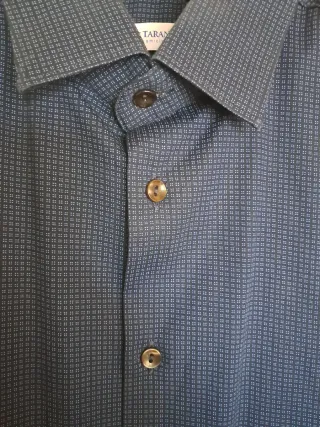 Camicia originale Emporio Armani, taglia L. • Colore: Blu notte • Vestibilità: Slim fit / Regolare • Condizioni: Ottime, tessuto integro e bottoni originali presenti. ⚠️Il colore è ancora vivido e uniforme, le ombre nelle foto sono dovute esclusivamente alla luce.