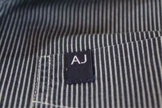 Camicia a maniche lunghe con un motivo a righe verticali. - Logo AJ sul taschino. - Chiusura con bottoni. - Polsini con bottoni.