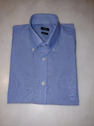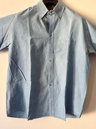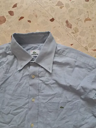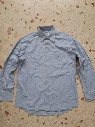 Camicia a maniche lunghe dal taglio classico, perfetta per un look casual o più formale. - Fantasia a micro-quadri. - Colletto button-down. - Chiusura con bottoni logati - Logo ricamato sul petto. regular fit, pence dietro , ottimo stato nel complesso , in redenta solo un alone nella manica , basta pre trattarlo prima di lavare e andata via .