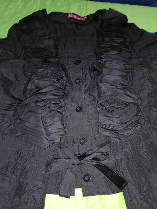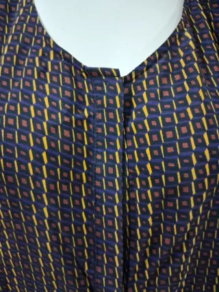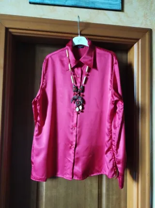 Camicia da donna in tessuto leggero tipo crepe. Nuova, ottima vestibilità. L'etichetta è una L (50) ma su wallapop la corrispondenza è errata quindi ho dovuto indicare una XXL per indicare una 50 Misure: lunghezza dal punto spalla all'orlo cm. 80 Larghezza da ascella ad ascella cm. 63 - Maniche corte - Chiusura con bottoni - Colletto classico