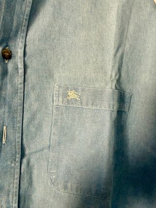 Camicia in denim a maniche corte. - Tessuto in denim leggero. - Logo Burberry ricamato sul taschino. - Chiusura con bottoni. - Collo button-down.