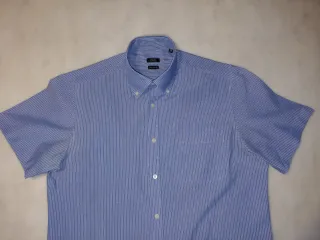 Camicia da uomo a maniche corte con un classico motivo a righe. - Colletto con bottoni. - Taschino sul petto. - Vestibilità regular fit.
