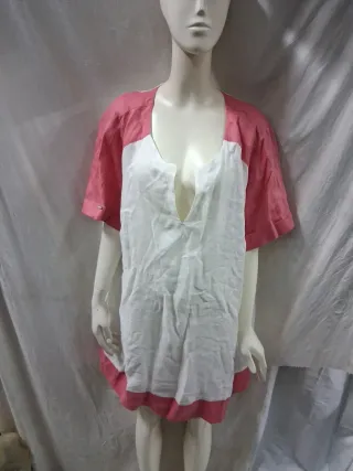 Camicia Lino Donna Bianco/Rosa Taglia Unica
