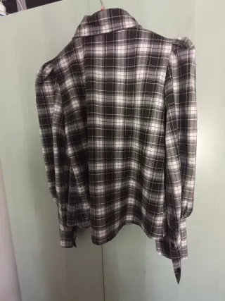 Camicia a quadri con maniche a palloncino. - Fantasia a quadri grigio e bianco. - Maniche lunghe con polsino. Prezzo trattabile.