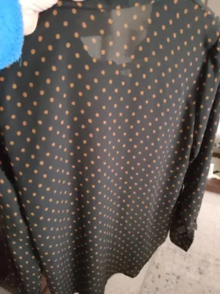 Camicia H&M dal design elegante e raffinato. - Tessuto leggero con fantasia a pois. - Scollo a V con bottoni. - Maniche lunghe con polsini.