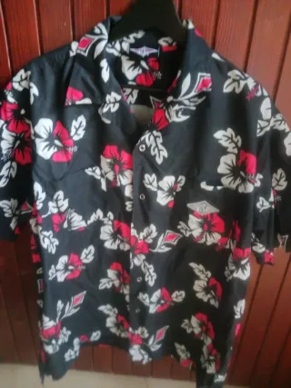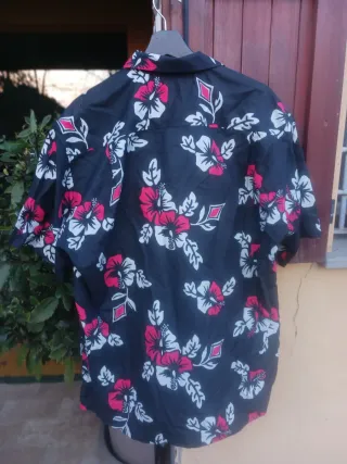 Camicia da uomo con una vivace fantasia floreale. Nuova. Marca " Bear". Taglia XL - Maniche corte. - Colletto classico. - Chiusura con bottoni.