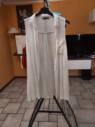 Vendo camicetta usata Pimkie da donna bianca a righe nere,con maniche lunghe e 2 tasche,taglia L 100% poliestere chiusura a bottoni in perfette condizioni.