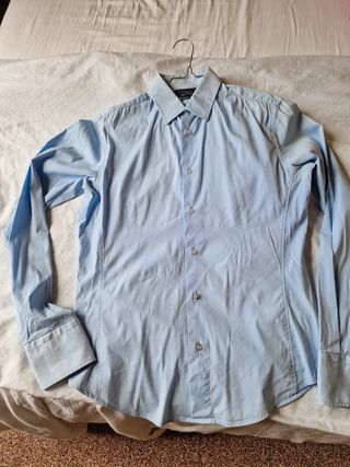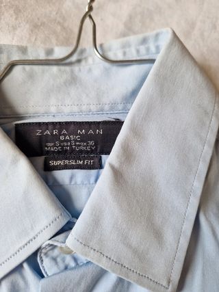 Camicia Zara uomo Basic superslim fit azzurra usata solo 2 volte. Ampiezza delle spalle 40 cm / Lunghezza 64 cm. Taglia S