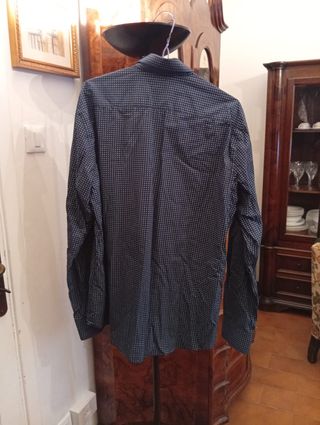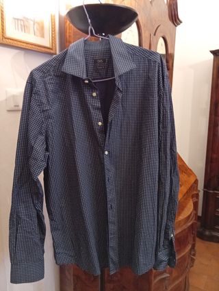Camicia da uomo a maniche lunghe. Spalle cm.46 manica cm.64, circonferenza sotto ascelle 126 ,lunghezza cm.69 - Colore blu. - Tessuto leggero e traspirante. - Chiusura con bottoni. - Collo con bottoni. - Polsini con bottone.