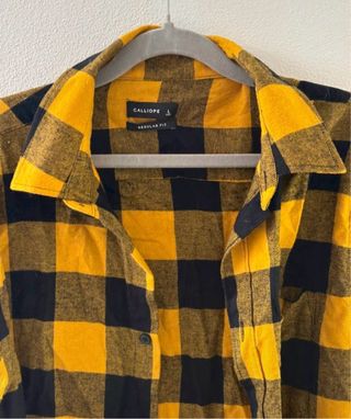 Camicia a quadri da uomo. - Fantasia a quadri gialli e neri. - Vestibilità regular fit.