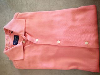Camicia a righe con colletto. Taglia xl altre misure in foto per precisione per evitare malintesi e resi Colore Borgogna e righe rosa - Fantasia a righe verticali. - Chiusura con bottoni. - Bottoni sul colletto. Non spedisco con Poste Italiane
