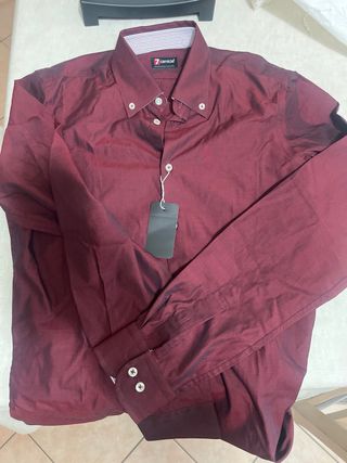 Camicia da uomo di colore rosso. - Tessuto di qualità. - Colletto classico. - Chiusura con bottoni. colore bordeaux