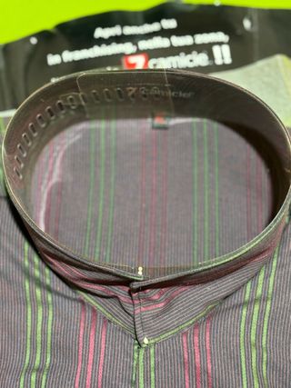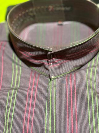 Camicia da uomo a maniche lunghe con colletto alla coreana. - Fantasia a righe verticali. - Vestibilità Slim. - Taglia 44. Vedi altre misure in foto per evitare malintesi e resi Non spedisco con Poste Italiane