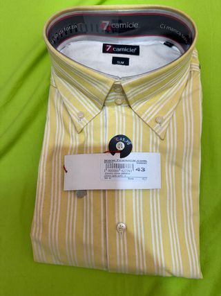 Camicia da uomo a maniche lunghe, modello slim fit Taglia xl altre misure in foto per precisione e correttezza per evitare malintesi e resi - Fantasia a righe verticali gialle e bianche. - Colletto button-down. - Chiusura con bottoni. - Tessuto Oxford. Già Scontata Non spedisco con Poste Italiane