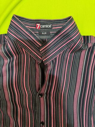 Camicia a maniche lunghe con un design a righe verticali. Mix di colori nero rosa bianco Taglia xl altre misure in foto per precisione per evitare malintesi e resi - Fantasia a righe verticali. - Colletto alla coreana - Vestibilità slim. Non spedisco con Poste Italiane