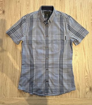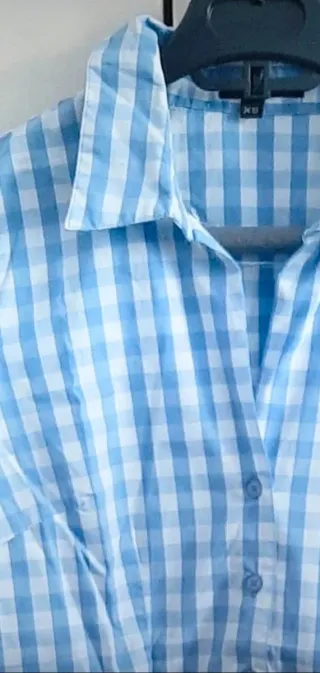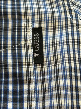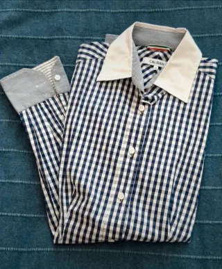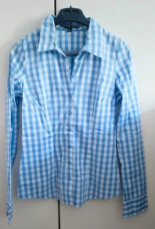 Camicia a quadri. - Fantasia a quadri blu e bianchi. - Colletto classico. - Polsini con bottoni - manca il primo bottone come si vede nella penultima foto, ci sono bottoni di ricambio
