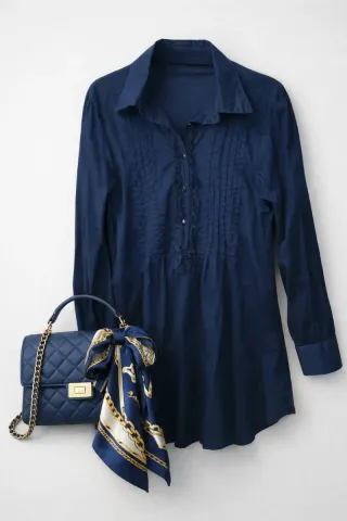 Elegante camicia blu con un design raffinato. - Maniche lunghe. - Dettagli plissettati sul davanti. - Colletto classico.